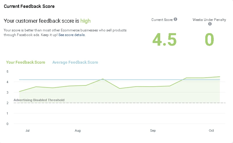 Our Facebook Official Customer Feedback Score Has Reached 4.5 out of 5. The Pages with a customer feedback score below 2 will not be allowed to advertise anymore. We take very seriously our product quality and customer service. Please rest assured of purchasing products