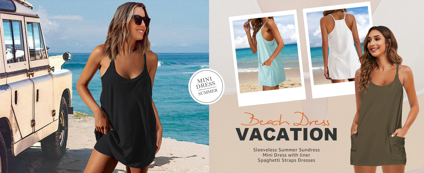 • Feature: This casual mini dress has a soft fabric, scoop neck, oversized patch pockets and comfy shorts, making it perfect for staying cool and stylish during hot summer days. The spaghetti straps short dress and charming design are sure to make a statement.
